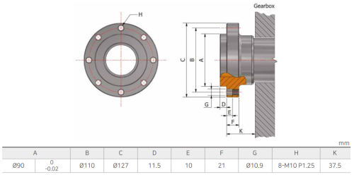 – Componentes para Live PTO (placa de bomba, acoplamiento)